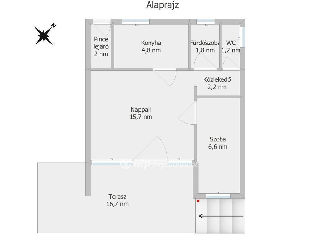 -Helyiségek: szoba + nappali, konyha, fürdőszoba, külön WC
