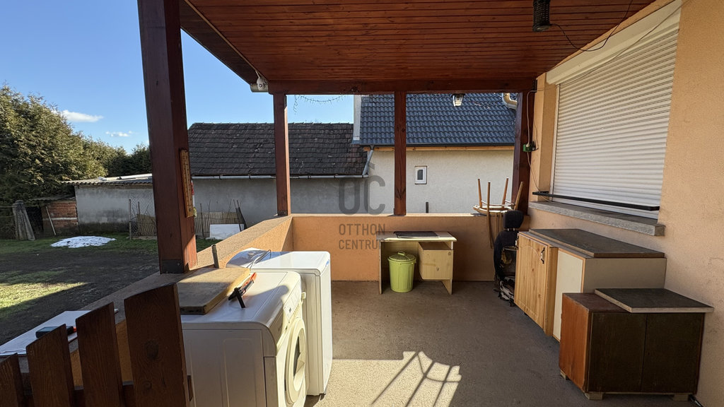 A házhoz tartozik kazánház WC-vel, 2 tároló, valamint fedett beálló akár 3 autó részére.