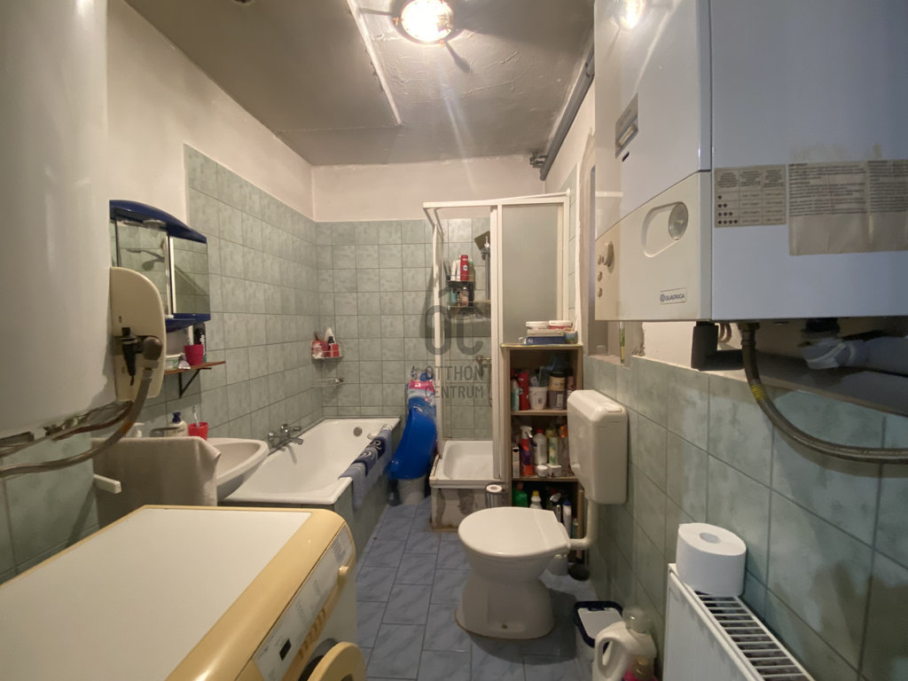 Fűtés: gáz-cirkó, vegyes tüzelésű kazán, cserépkályha