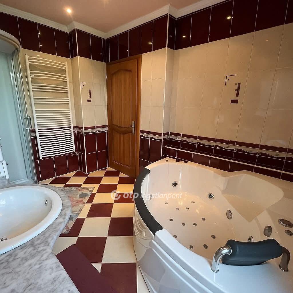 Eladásra kínálok Bakonyszentlászlón, Győr-Moson-Sopron vármegyében, a Pannonhalmi járásban, csendes környezetben, erdőhöz közeli település részen, bakonyi erdőre néző panorámáva, remek elrendezésű, tágas belső terekkel rendelkező, igazán otthonos, 258,7 m2-es családi házat, 821 m2-es telken, amelyhez még egy ugyanekkora nyagyságú telek is csatlakozik. Bakonyszentlászló Zirc után a környék legnagyobb települése. A település turisztikailag népszerű, a Bakonyalja tájegység pápai és súri részegységei találkozásánál helyezkedik el, Pápától, Győrtől és Veszprémtől egyaránt 40-40 kilométer távolságra. A 2008-ban épült ingatlan, minőségi alapanyagokból, átgondoltan tervezve, kivitelezve épült. Elrendezés tekintetében áll: 4 szobából, egy amerikai konyhás nappaliból és étkezőből, kamrából, tágas előszobából, fürdőszobából és illemhelyiségből, gardróbból, valamint egy fedett teraszból /20m2/, duplagarázsból, a pincerészen szauna, szolárium és a kondiszoba, kamra, gardróbszoba, mosókonyha, kazánház található. A ház szobái laminált parkettássak, a többi helyiség kerámia burkolatú. Mindkét fürdőszoba kényelmes, nagyméretű, az egyikben jacuzzi és zuhanyzó, a másikban zuhanyzó került beépítésre. A fűtés két féle Buderus kazánnal is lehetséges / gázkazán, faelgázosító kazán/, és a hozzákapcsolódó 500l.-s puffertartállyal, a lakószinten padló és falfűtéssel, az alsó szinten radiátoros hőleadással. Az épületben hűtő-fűtő klíma is segíti a megfelelő hőmérséklet kialakítását. Az ingatlan mérete ellenére alacsony rezsi számlával rendelkezik. A víz tisztaságát a beépített víz szűrő-és lágyító rendszer garantálja. A természetes fa beltéri ajtók, a beépített fabútorok mellett a tágas konyhában a fakonyhabútor található. A duplagarázs padlófűtéssel rendelkezik, előtte fedett, térkővel borított kocsibeálló helyezkedik el két autó számára. A ház kiváló statikai és szerkezeti állapotú, 3-rétegő műanyag nyílászárók kívülről alumínium borítással, redőnyökkel, szúnyoghálóval ellátottak. Tágas, világos terek jellemzik. Udvara rendezett, körbekerített, részben füvesített, részben térkövezett, ahol egy tágas tárolóépület, fúrt kút található. A településen minden megtalálható, ami a hétköznapokban szükséges lehet, így orvosi rendelő, gyógyszertár, ATM, bank, üzletek, könyvtár, állatorvos, óvoda, iskola, kultúrház, étterem, védőnő, masszőr, szépségszalon és még sorolhatnám. Az utca csendes, ám minden elérhető, bolt, buszmegálló a közelben. A környék csodálatos kirándulóhely, számtalan barlang, forrás, erdei tanösvény, kilátó, pincesor teszi felejthetetlenné az ide látogatók számára. Az otthonosan kialakított családiházat ajánlom mindazon vevők részére, akik egy szép, családias, nyugodt részen kívánnak élni, távol a város zajától, falun, nyugodt családias természetközeli környezetben keresnek már jelen formájában is modern, takarékos, kényelmes otthont családi háznak, amely remek elosztásának köszönhetően nagyobb családnak, vagy több generáció együttéléséhez is elegendő teret biztosít vagy akár üzleti szempontból is jó befektetés lehet. Az OTP Ingatlanpont teljes körű ügyintézéssel áll az eladók és a vevők rendelkezésére. A kínálatunkból választott ingatlan finanszírozásához kedvezményes hitelkonstrukciót kínálunk. Otthon Start Hitelprogram. Az adásvételi szerződés megkötéséhez igény szerint megbízható ügyvédi közreműködést biztosítunk, és segítséget nyújtunk az adásvételhez kapcsolódó ügyek intézéséhez is. Az ingatlanról készült alaprajz, illetve fényképfelvételek az Otp ingatlanpont szellemi tulajdonát képezik. Páratlan lehetőség! Hivjon és vásárolja meg álmai otthonát vagy szabadidő eltöltésére hétvégi házát!