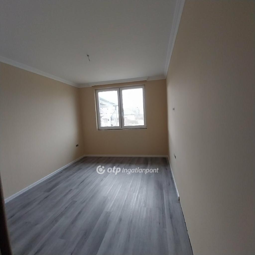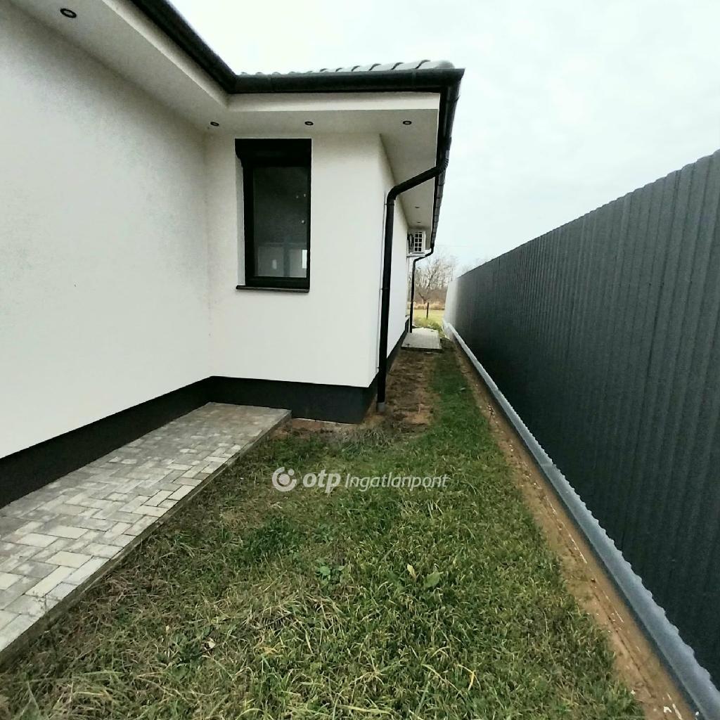 Tágas, 45,8 m2-es,- világos, amerikai konyhás nappali, 3 külön nyíló hálószoba, fürdőszoba + külön WC, mosókonyha, 16 nm-es fedett terasz, 18 m2-es a garázs. Kerítéssel, térkövezéssel!