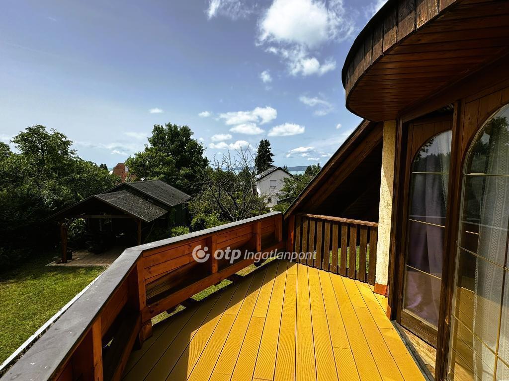 Emelet: 3 hálószoba, fürdő, WC, erkély balatoni panorámával.