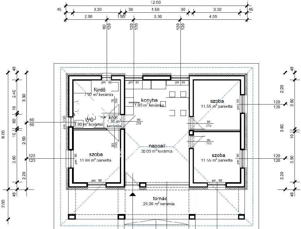 -Lakóterület: 126 m²