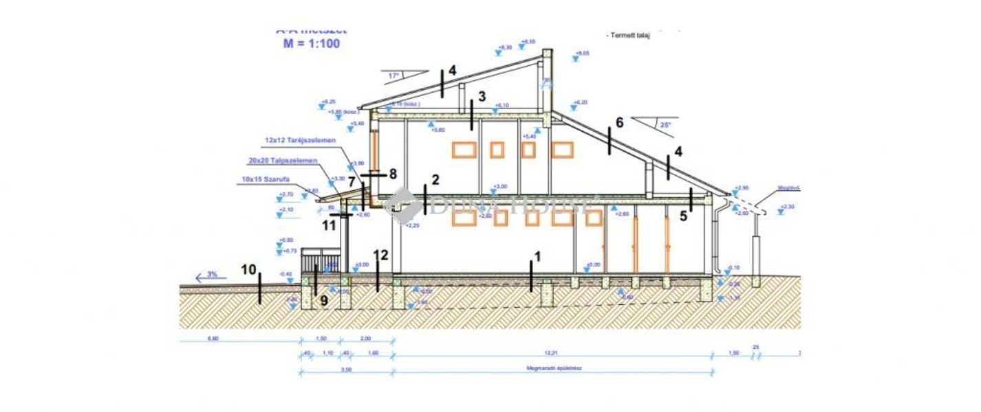 Épület szerkezete: B30 tégla, beton sávalap, betongerendás bélésfödém, fenyő tetőszerkezet