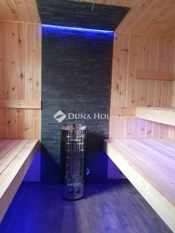 Szaunaház és panorámás teraszok a teljes kikapcsolódáshoz.
