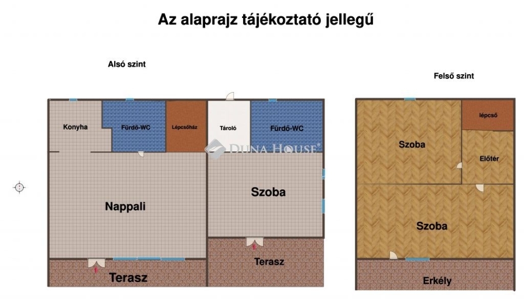Az emeleten egy kis előszoba nyílik, innen egy praktikus félszoba, valamint egy hálószoba saját terasszal, ahol ideális hely várja a pihenéshez.