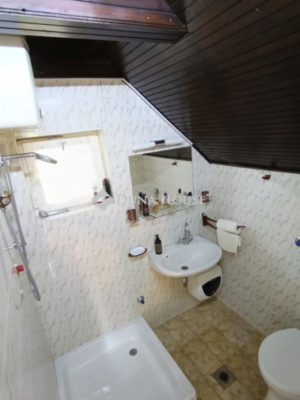 A másik bejáraton át,ami egy kényelmes étkezőteraszon át vezet, egy nappali-konyha-étkező rész fogad, melyhez fürdőszoba és WC is tartozik.