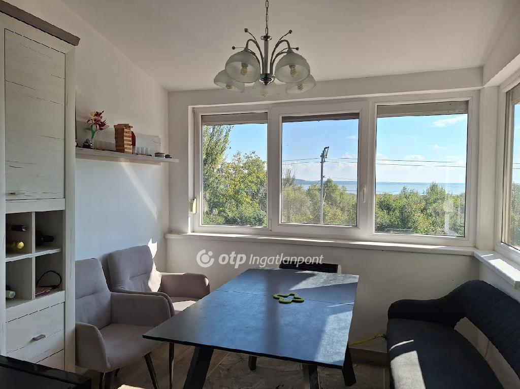 Ez a 708 m²-es, parkosított telken álló 52 m²-es nyaraló örök, zavartalan balatoni panorámával rendelkezik. A telek a domboldalon, egy forgalommentes utca legvégén található – a kilátást semmi sem zavarja, hiszen alatta már csak a vasútvonal és a nádas húzódik.