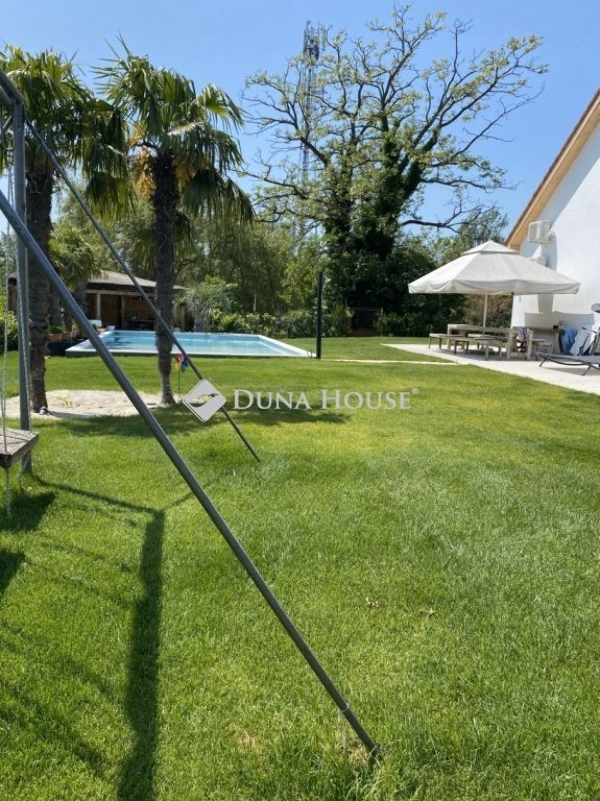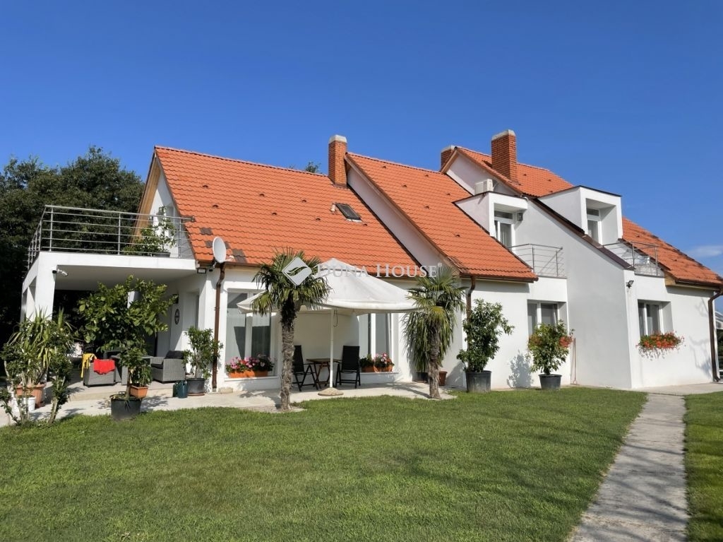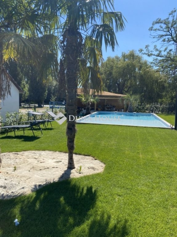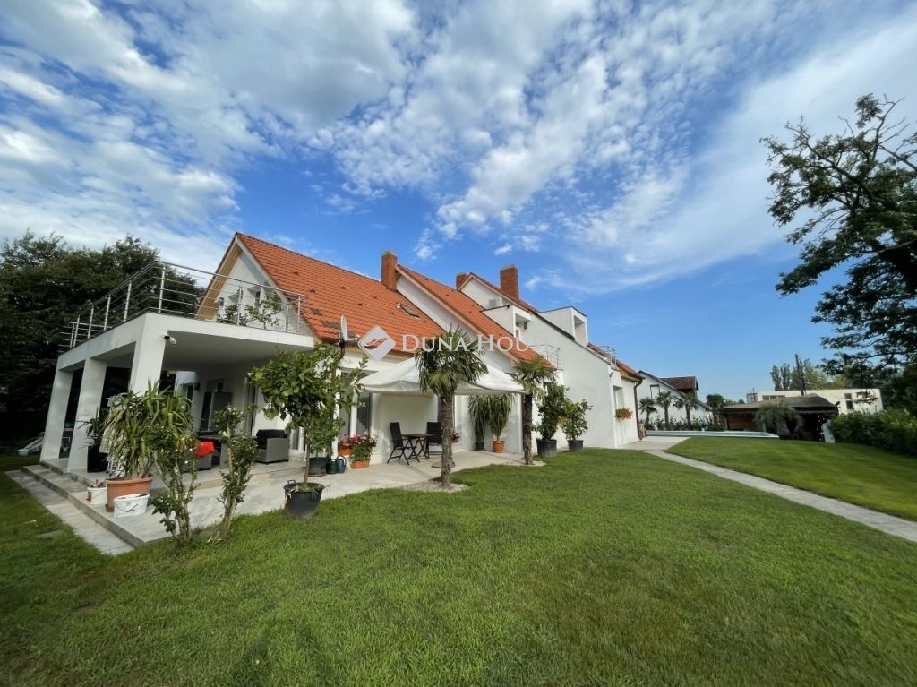Balatonbogláron eladó EXKLUZÍV MEDENCÉS családi ház**A 2015 nm-es rendezett telken található 400 nm -es ház, 2022-ben, téglából épült. Az ingatlan lakóház besorolású, modern, igényes kivitelezésű, szigetelt épület. Az ingatlan elosztása, földszinten, tágas előszoba, világos amerikai konyhás nappali, ami a fedett teraszra nyílik, szoba, fürdőszoba-wc, tároló, mosókonyha, valamint 2 db 2 szobás lakóegységből álló lakrész amihez mindegyikhez saját fürdőszoba-wc, az egyikben konyha kialakítás is tartozik. Az emeleti részben, 2 db 2 szobás, és 2 db 1 szobás lakóegység található, mindegyikben fürdőszoba és terasz kapcsolat elosztású. A ház és a burkolatok, konyha, nyílászárok magas minőségű, modern, igényes anyagokból készültek. Az ingatlanban összesen 7 lakóegységből áll, mindegyikben hűtő-fűtő klíma, az emeleti rész még soha nem volt használva. A ház melegéről padlófűtés kondenzációs gázkazán gondoskodik. A gyönyörű telken rengeteg termő gyümölcsfa, pálmafák alatt mediterrán grillpavilon, tárolók, és egy 9*6 méteres medence is épült. Az épület Balatonboglár szélén, csendes környéken helyezkedik el. Az erkélyről CSODÁS panoráma nyílik a BALATONRA. Az autópálya felhajtó 1 percre található. Ajánlom állom otthonnak, vendégháznak, de befektetésnek is remek lehetőség. BALATON 130 m-re van, és a ház mögötti csatornán keresztül csónakkal megközelíthető. A ház végében csónak kikötés lehetséges. Amennyiben kínálatom felkeltette érdeklődést, kérem keressen elérhetőségeim egyikén akár hétvégén is! Hibás hirdetés bejelentése