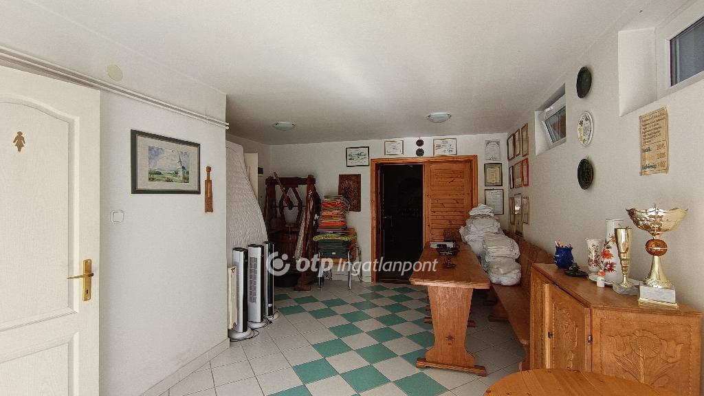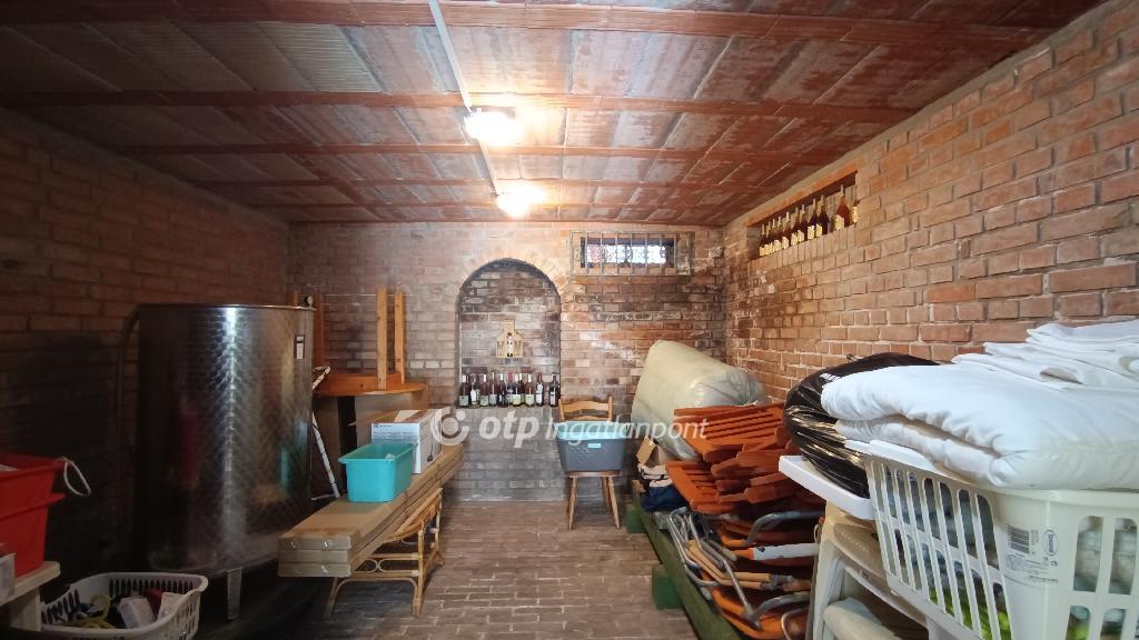 Eladó egy 4 apartmanos apartmanház 90 m2 alagsora. Az épületrészt korábban borkóstoláshoz alakították ki és üzemeltették. Az épületbe lépve egy nagy előtérbe érünk, innen nyílik a borospince, ahol nem csak a kóstoláshoz kínált borokat tárolták hordókban, de helyben palackozták is. Egy 38-40 fő befogadására alkalmas étkező adott helyet a gasztronómiai élménynek. Ehhez tartozik egy felszerelt kis konyha és egy raktár, külön női és férfi wc.