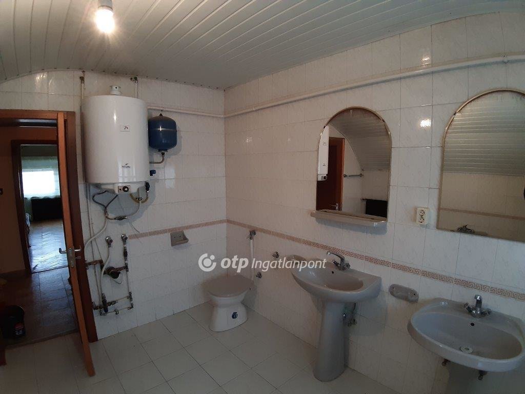 A kívülről 2 oldalról is megközelíthető alagsorban egy nagyméretű, fűthető műhely, közlekedő, előtér és az utcáról lejtős rámpán megközelíthető garázs került kialakításra. A ház fűtése az alagsori műhelyben lévő új, korszerű gáz-cirkó kazánról, helyiségenként radiátorokkal megoldott, + a fűtésre rásegít még a földszinti szobában megrakott cserépkályha, továbbá a háztető nyugati oldalán kialakított napelemes rendszer. A telek összközműves, bekerített, füvesített, díszfákkal beültetett.