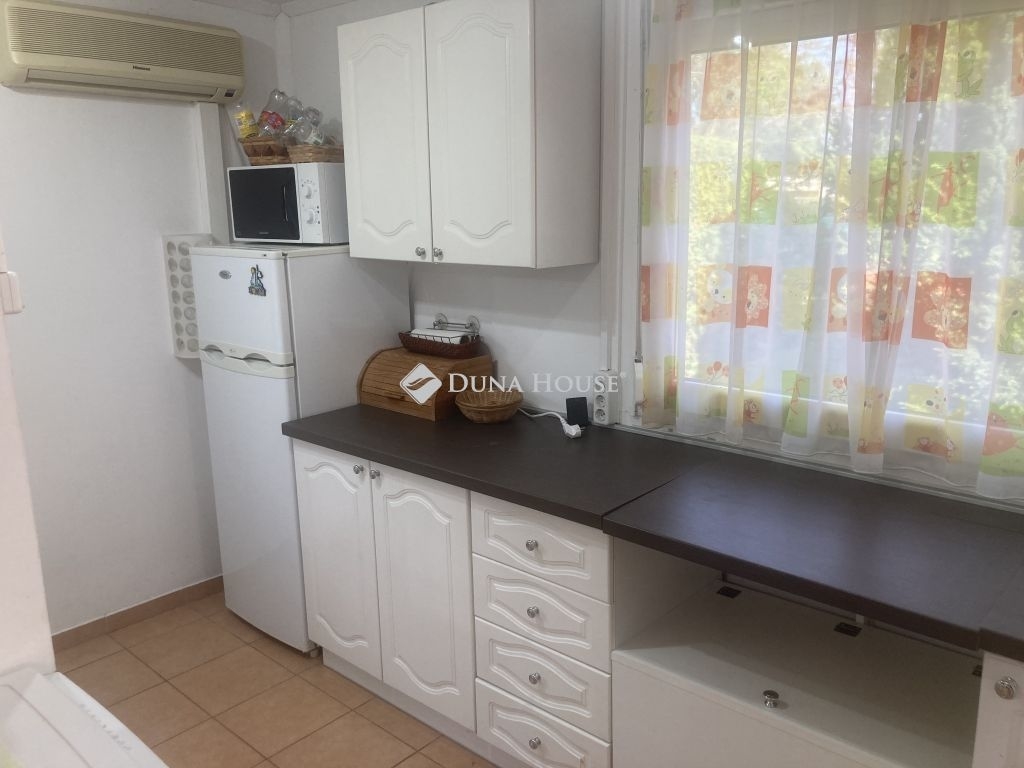 Balatonfűzfőn strandközeli házikó, parkosított telken eladó. A ház 45 nm, az alábbi helyiségekkel:nappali, két szoba, konyha, fürdő wc-vel. Tartozik hozzá egy nagy, 12 nm terasz. A telek belterületi, 18x40 méteres.Amennyiben valaki új házat szeretne építeni a lakóövezeti, 713 nm telekre, azt 25%-os beépíthetőséggel, 4,5 m magasságig teheti. A ház teljesen felújított, víz, gáz, csatorna és 3x16A villany van bevezetve. A melegvizet bojler állítja elő, a fűtés elektromos, a hűtésről légkondicionáló berendezés gondoskodik. A tv és internet be van vezetve a házba.A kertben távolról is vezérelhető öntözőrendszer illetve kamerarendszer lett kiépítve.A telek hátsó részén beton alapú szerszámtároló van.Az udvar körben kerítéssel van kerítve, elöl távirányítós kapuval.Fekvése kiváló:-csendes részen-közel a Balatonhoz-közel üzletekhez.Ideális nyaralónak, befektetésnek kiadásra, vagy akár állandó lakhatásra is.Ha felkeltette érdeklődését, keressen bátran, és mutatom is. Hibás hirdetés bejelentése