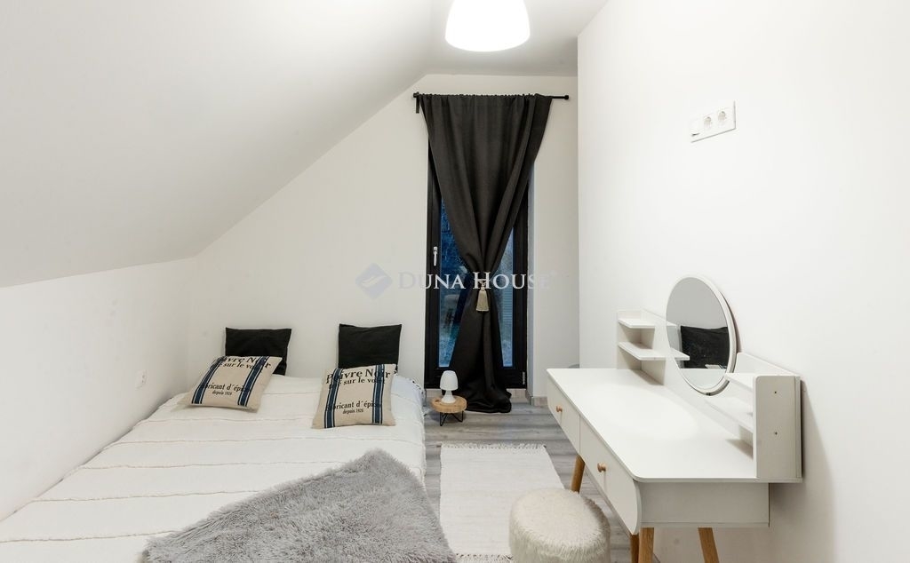 A kétszintes ingatlan nettó 107 négyzetméter alapterületű. Elosztását tekintve átgondolt; világos terek jellemzik: a tágas, galériás amerikai konyha - nappali - étkezővel biztosítja a társasági élet központját, valamint a mindkét szinten megtalálható 2-2 hálószoba és 1-1 fürdőszoba wc-vel lehetővé teszik a praktikus és kényelmes életvitelt.