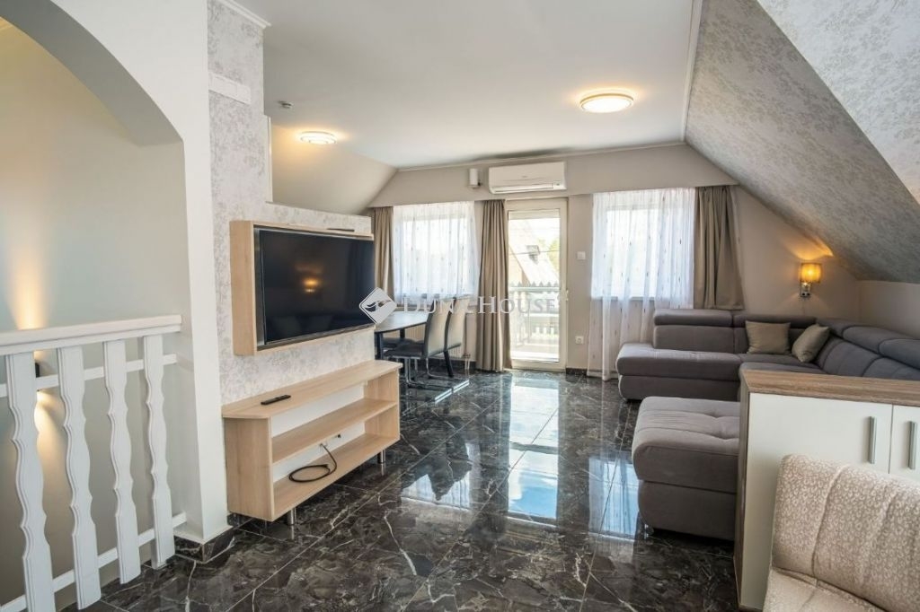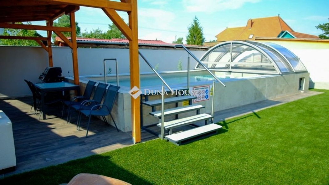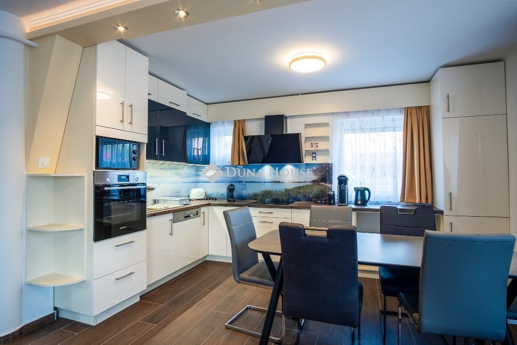 KÉTSZINTES CSALÁDI OKOS OTTHON KÜLTÉRI MEDENCÉVEL A BALATON DÉLI PARTJÁN2 AMERIKAI KONYHÁS NAPPALI, 4 HÁLÓSZOBA, 2 FÜRDŐSZOBA, 4 WCSomogy megyében, A Balaton déli partján, Balatonkeresztúron, Balaton leghosszabb stégjétől, és a szabadstrandtól csupán pár száz méternyire , családias zöldövezetben kínálunk egy prémium minőségű családi villát. Csendes , nyugodt település amely ideális azok számára, akik békésebb vidéki életstílusra vágynak. A nyári időszakban ugyanakkor nagyon vonzó a turizmus tekintetében, ezért befektetésnek is kiváló választás.Az épület 2023-as felújításának köszönhetően a modern kori elvárásoknak is tökéletesen megfelelő elosztást, enteriőrt,és kényelmi fokozatot élvezhet az új lakó. A 120 m2-es, kétszintes villa kialakításánál a fő szempont az volt, hogy akár több generáció élhessen kényelmesen, egymás mellett. A földszinten közel 30 m2-es amerikai konyhás nappali, két hálószoba, fürdőszoba, és két WC került kialakításra. A tetőtérben 32 m2-es amerikai konyhás nappali, két hálószoba, fürdőszoba, és 2 WC található! A hálószobákból,és a nappalikból is kijárat van a teraszokra.Szálláshely funkciónál 8+2 fő elszállásolására alkalmas.Az ingatlanban számos extra található: Fedett és vízhőfok-szabályozós, hűthető-fűthető medence/Távolról vezérelhető intelligens épületfelügyeleti rendszer/Minden zár kóddal működik, nincs kulcs/Elektromos autó töltési lehetőség helyben/Légkondicionált helyiségek/Teljes felszereltségű konyha (hűtő, sütő és főzőlap, mikrohullámú sütő, kapszulás kávégép, kenyérpirító, vízforraló, teljes étkészlet)/Minden szinten saját fürdőszoba WC-vel, plusz extra mellékhelyiség (WC szintenként 2 db)/Minden ablakon szúnyogháló/Mosókonyha mosógépekkel és szárítógépekkel/Privát kert/Grillezési lehetőség Enders Monroe kerti gáz grillsütővel.A 454 m2-es telken a mészkővel kirakott, fedett , fűthető-hűthető medencén kívül fedett terasz , valamint három autó számára parkolási lehetőség is adott.FIGYELEM! AZ IRÁNYÁR A TELJES FELSZERELTSÉGET TARTALMAZZA!Irányár: 189 000 000 Ft