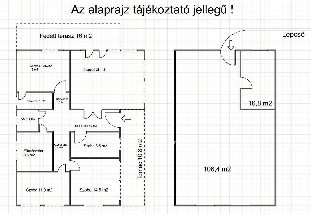 A tágas, kb. 106 m2-es padlástér kiváló lehetőséget kínál beépítésre. A padlástérben gáz-, villany- és szennyvíz-leállások is megtalálhatók, valamint egy 17 m2-es, levakolt és gipszkartonozott helyiség is rendelkezésre áll. A padlástér külön bejárattal rendelkezik, így az ingatlan kétgenerációs otthonként vagy befektetési célra is ideális választás.