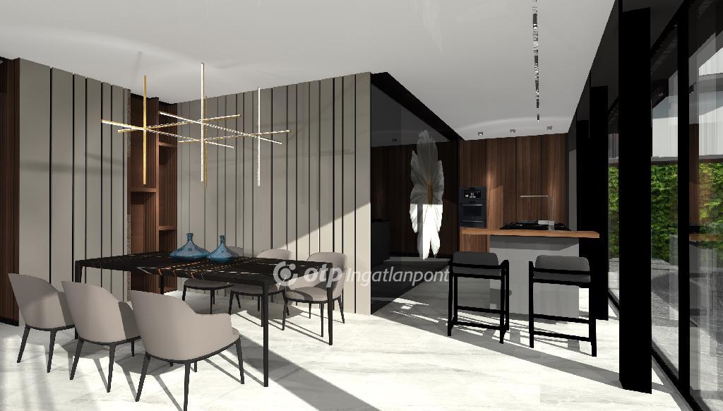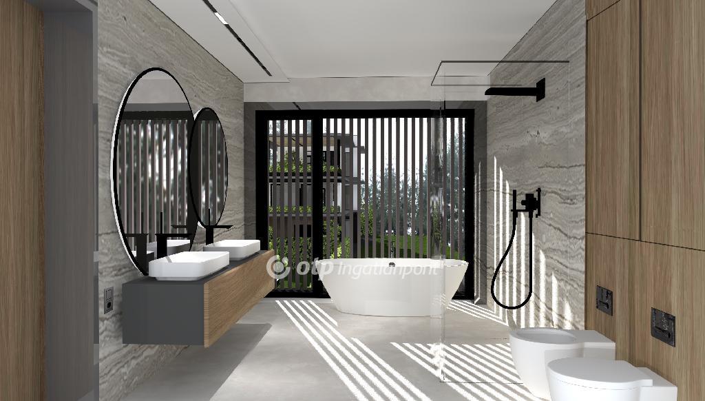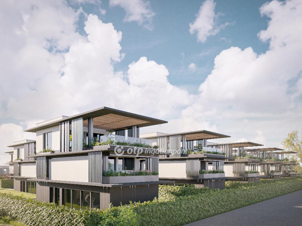 Eladó Luxus villák a Balaton egyik közkedvelt részén! A telek 80 m-re helyezkedik el a Balatontól, mely nyugodt, csendes helyen található. Különleges tervezésnek köszönhetően minden villaház balatoni panorámával rendelkezik. A beruházás több mint 6000 m2?en valósul meg, jelen állapotban kivitelezés alatt. A 13 darab villaház három sorban, egymástól függetlenül helyezkednek el. A kivitelezés folyamán mind az anyaghasználatban és technológiában a legmagasabb minőséget használják fel. A projekt kialakításának és kidolgozottságának köszönhetően egyedi, kivételes beruházás. Mindegyik villa saját parkosított, öntözőrendszerrel ellátott kerttel rendelkezik. A házak egymástól fizikálisan 1,8 m magas borostyán kerítéssel vannak elválasztva, ezzel a vertikális örökzöld fallal biztosítva a természet közelségét, ellenben az egymástól való távolságot a nyugodt kikapcsolódáshoz szükséges intimitást. A házak földszintjén tágas, a mai kornak megfelelően kialakított kertkapcsolatos nappali, étkező és konyha került kialakításra, amely a legtöbbet használt közösségi tér. Az emeleten két darab teljes méretű szoba és hozzá tartozó gardrób került elhelyezésre, valamint egy nagyméretű káddal és zuhanyzóval is ellátott fürdőszoba. Mindkét szoba rendelkezik loggiával, így a természet közelsége itt is jelen van. A felső emeleten található egy nagy szoba gardróbbal és a hozzá tartozó fürdőszobával. Valamint itt található egy több mint 40 m2 -es tetőterasz, statikus árnyékolással és balatoni panorámával.