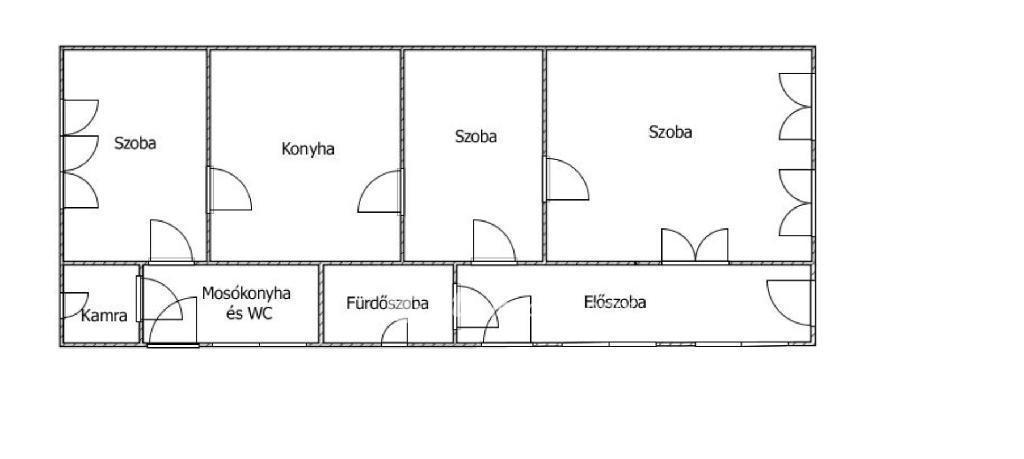A házban 3 szoba (egy jelenleg ebédlő), óriási előszoba (jelenleg irodahelyiség is), konyha, kamra, fürdőszoba és külön mosókonyha (benne a WC) helyiségek találhatók.