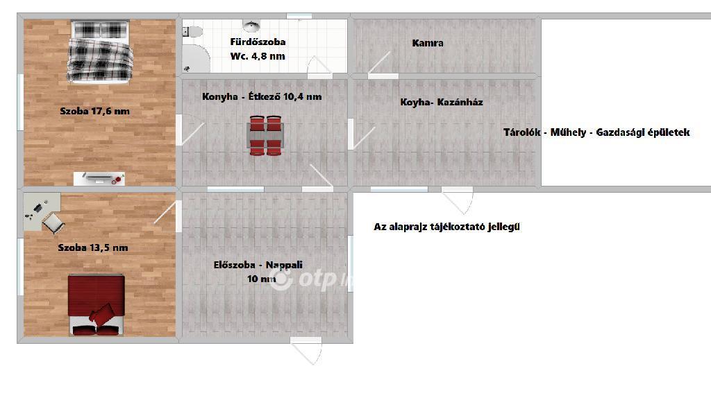 A konyhából megközelíthető nyári konyha, kazánház és kamra, további lakóhelyiségekké alakíthatók, így akár egy tágas, modern otthont is kialakíthat belőle.