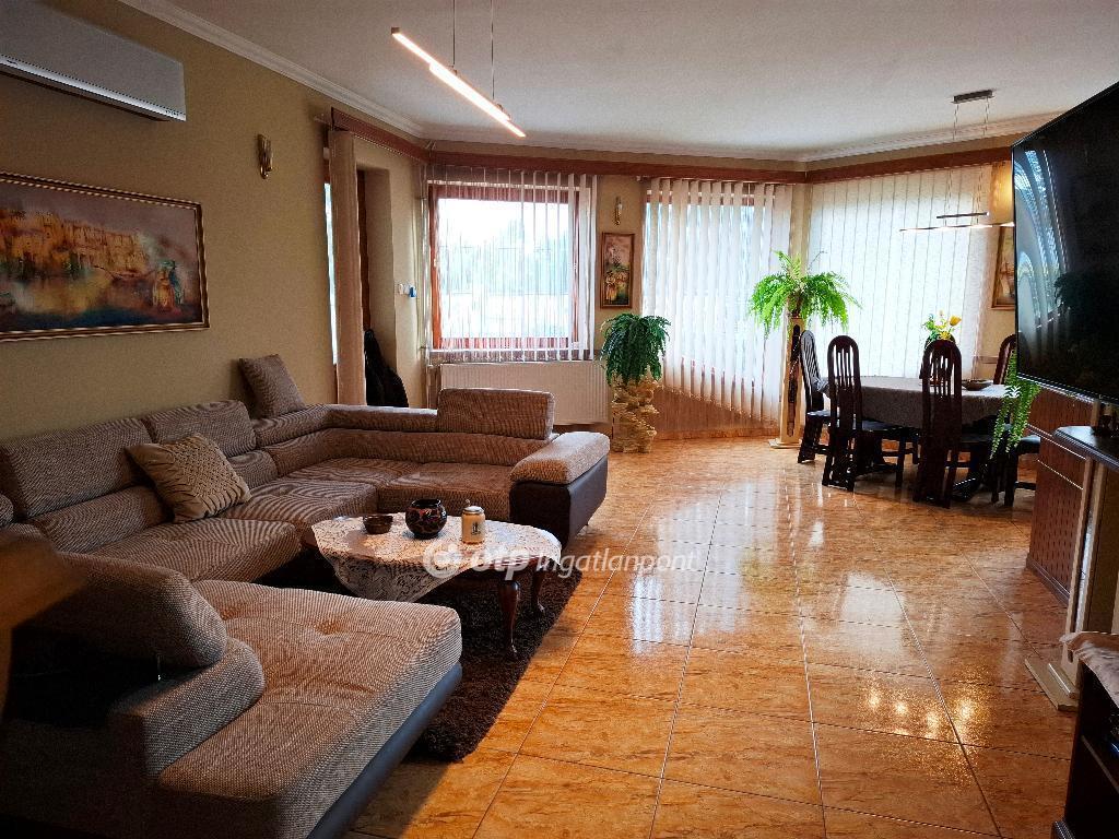 Békéscsabán 228 nm-es családi ház eladó. A tégla falazatú két szintes, nagyon jó állapotú ingatlan a városi sportcsarnok közelében, 984 nm-es telken helyezkedik el. A földszinten amerikai konyhás nappali, kamra, hálószoba, fürdőszoba, wc háztartási helyiség, közlekedő és lépcsőház kapott helyet. Ez az egység önállóan is használható, mert az emeleti rész külön bejárattal rendelkezik, ami zárt lépcsőházból közelíthető meg. Az emeleten további két nagy méretű szoba erkéllyel, mind két szobához fürdőszoba és gardrób tartozik, közlekedő és egy 20 nm-es konyha kapott helyet . A házban van még egy gépkocsi tároló, közvetlen bejárattal a fő épületbe. A főépület mögött 50 nm-es épület húzódik, amibe 20 nm-es garázs valamint egy 30 nm-es műhely található. Az otthon melegét gáz cirkó fűtés biztosítja a földszinten padlófűtés, az emeleten radiátorokon keresztül. A hálószobák padlószőnyegesek, a többi helyiség járólap borítású. A nappaliban légkondicionáló berendezés van felszerelve. A nagy méretű előkert, ami távol tartja az út zaját, szépen gondozott, benne pázsit és dísznövények húzódnak. A házat díszburkolat veszi körül, ami a terasz funkcióját is betölti. Az épület különleges, egyedi kialakítású, jó nevű mérnök tervezte. Akár otthon start 3%-os hitelre is megvásárolható. Ügyfeleinknek jogi és ingyenes pénzügyi szolgáltatást nyújtunk.
