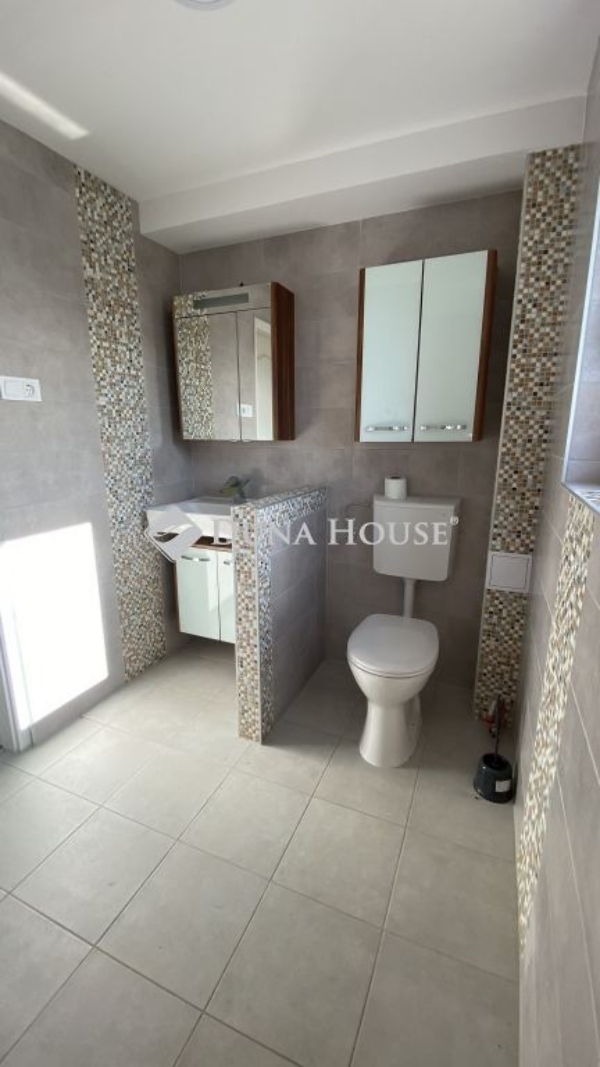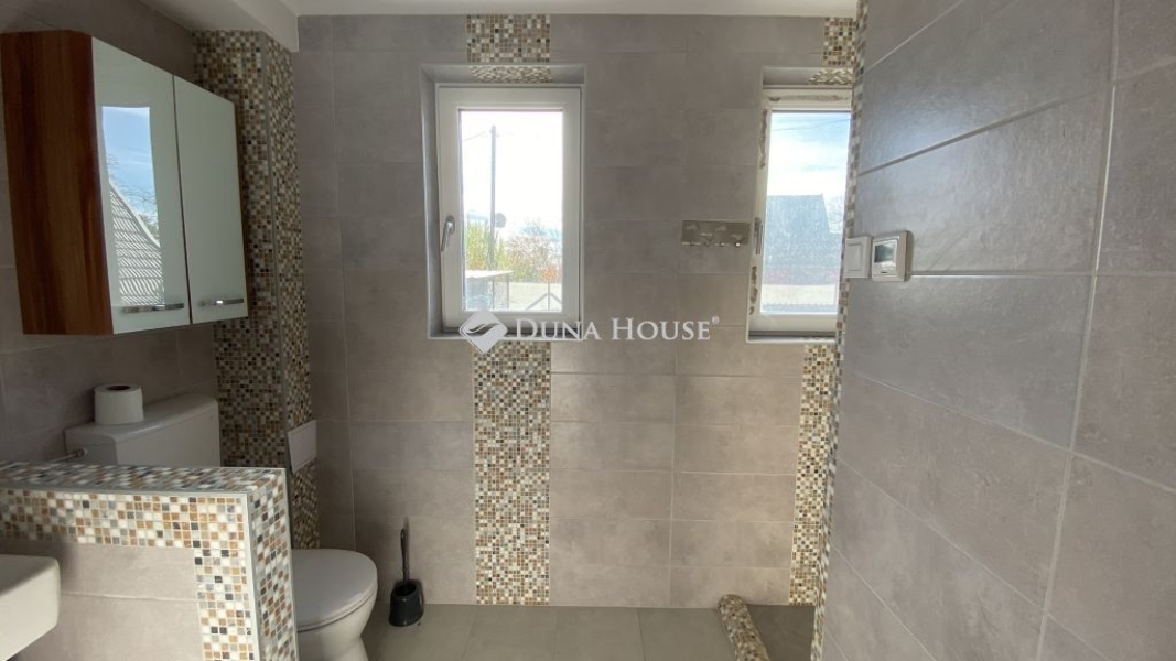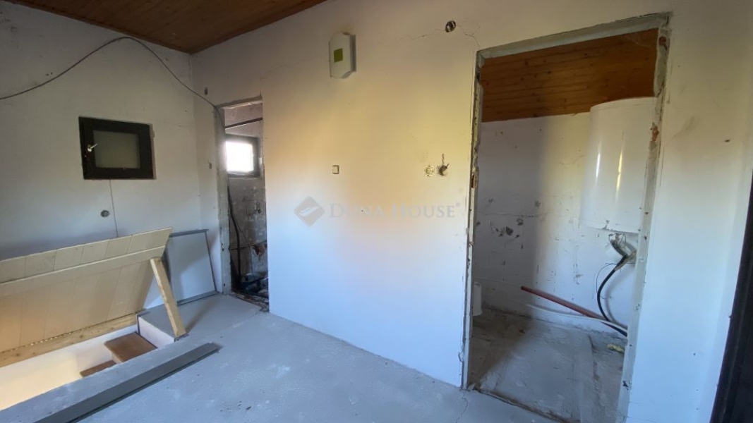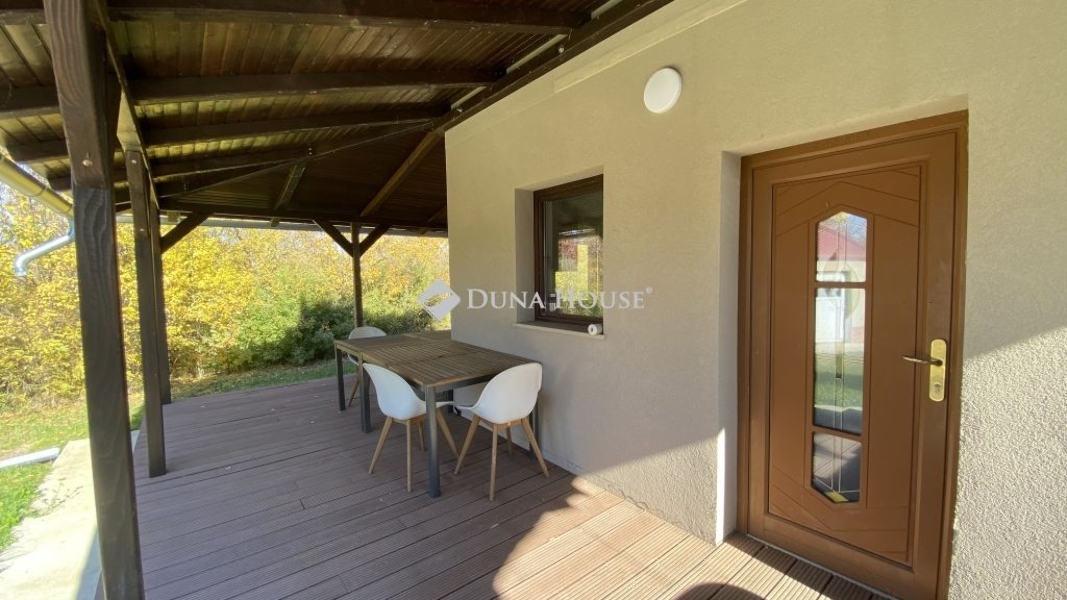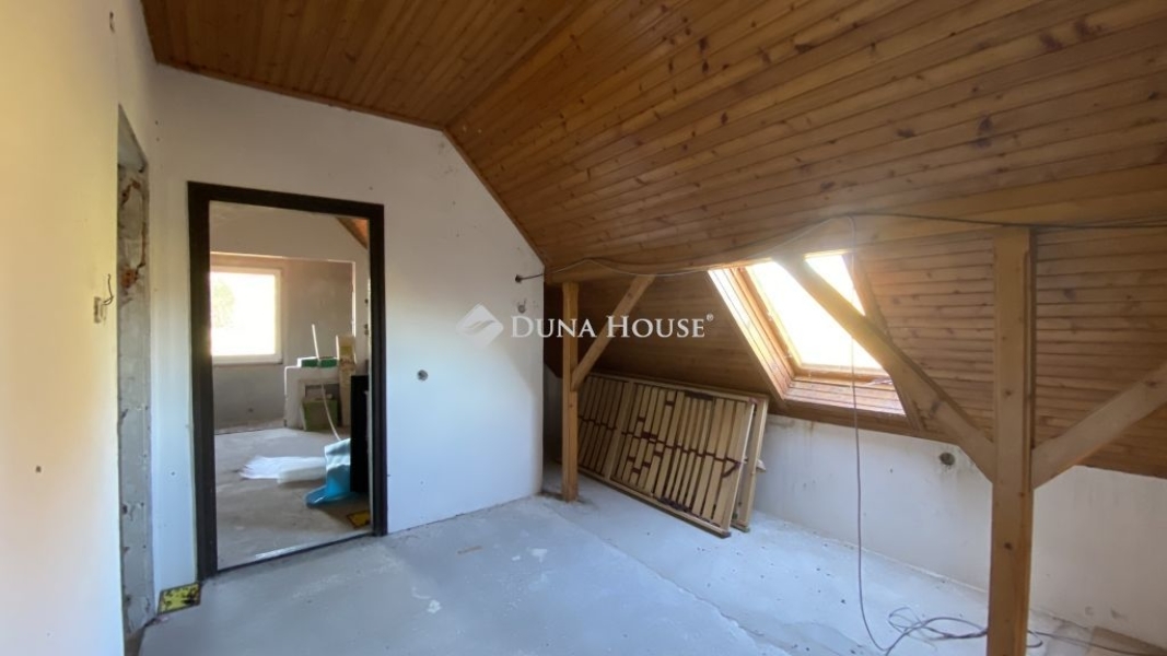 A felső szinten egy közlekedő, szoba és fürdőszoba WC található, ez a rész azonban még befejezésre vár, így az új tulajdonos saját igényei szerint alakíthatja ki.Az ingatlan fűtését egy pellet kazán és hűtő/fűtő klímaberendezés biztosítja, így akár egész évben használható.