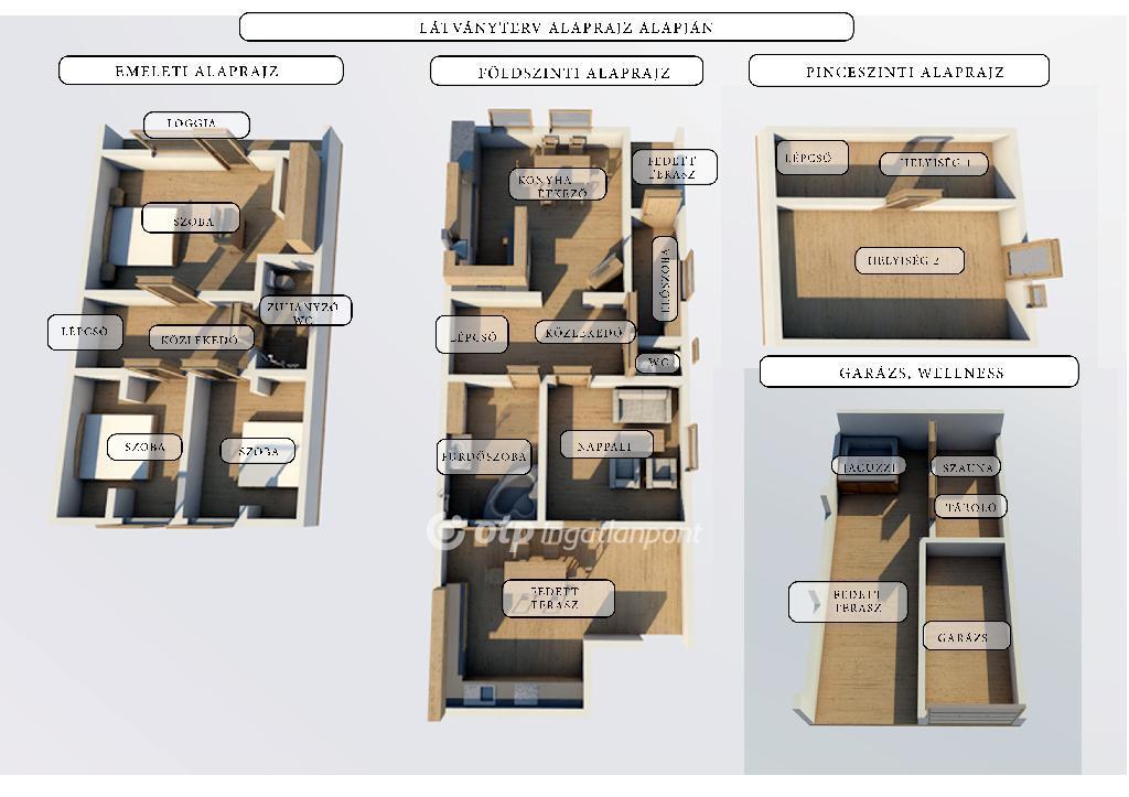 - Hasznos alapterület: kb. 112 m2 + pince + garázs + wellness rész