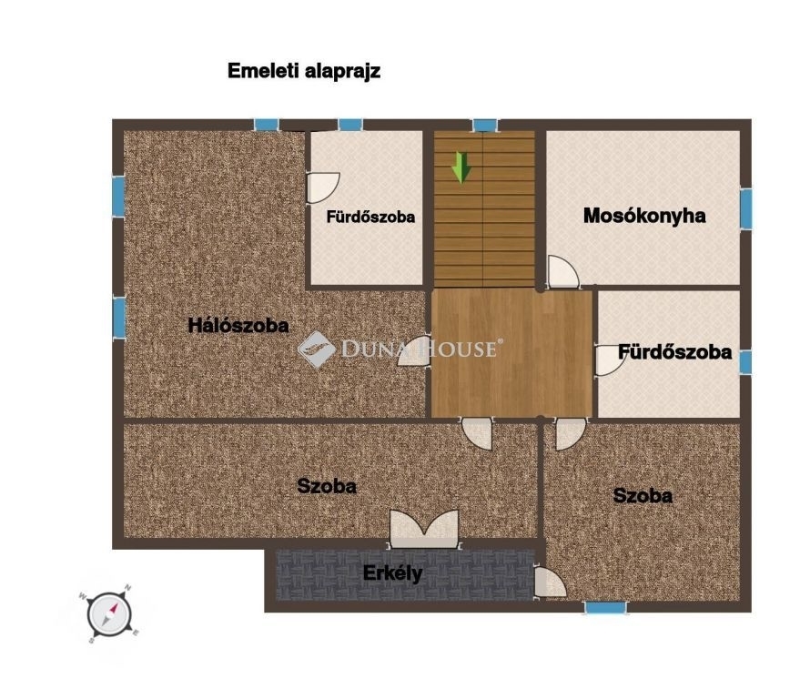 A méltán kedvelt Biatorbágyon eladó egy rendkívül jó beosztással rendelkező családi ház, 1000 négyzetméter gyümölcsfákkal beültetett kerttel.Az utcai bejáratot óriási diófák árnyékolják, ahol akár 2-3 autóval is parkolhatunk, vagy a garázsba hajtva a belső lépcsőn érjük el a földszinti tereket.A garázsban vizeshelyiség, bortároló és 17,4 négyzetméteres tér szolgálja az ott lakók kényelmét, amit az előző tulajdonos fitness helyiségnek használt. A földszinten vendég és dolgozószoba, fürdőszoba WC-vel, zuhannyal, nagy előszoba, étkező, konyha és nagy méretű nappali található, nagy méretű nyílászárókkal, 3,5 m belmagassággal. A nappaliból a közel 50 négyzetméteres teraszra léphetünk ki.Az emeleten található a 3 hálószoba, mosókonyha vagy varrószoba. Két hálóból 6,4 négyzetméteres erkély nyílikA szülői hálóhoz tartozik egy saját fürdőszoba WC-vel és zuhannyal. A gyerekek fürdőszobája káddal rendelkezik.Összefoglalva: 5 hálószoba, nagy világos terek, kandalló, hatalmas kert várja szerető új lakóját. :)Elhelyezkedése: Biatorbágyon csendes, békés diófákkal szegélyezett utcában található. Itt nem száguldoznak az autók, kéz a kézben sétálnak a környéken lakók, gyönyörködve a madárcsicsergésben.A szomszéd utcában jár a busz, a következő sarkon található az óvoda, kisbolt.Kényelmes méretű szobák, világos terek, csodás kert. Békés otthona lehet egy családnak. Hibás hirdetés bejelentése