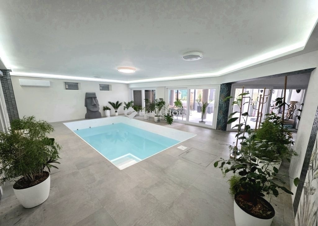 * Látványos beltéri medence tágas térrel, hangulatos LED világítással és elegáns burkolatokkal