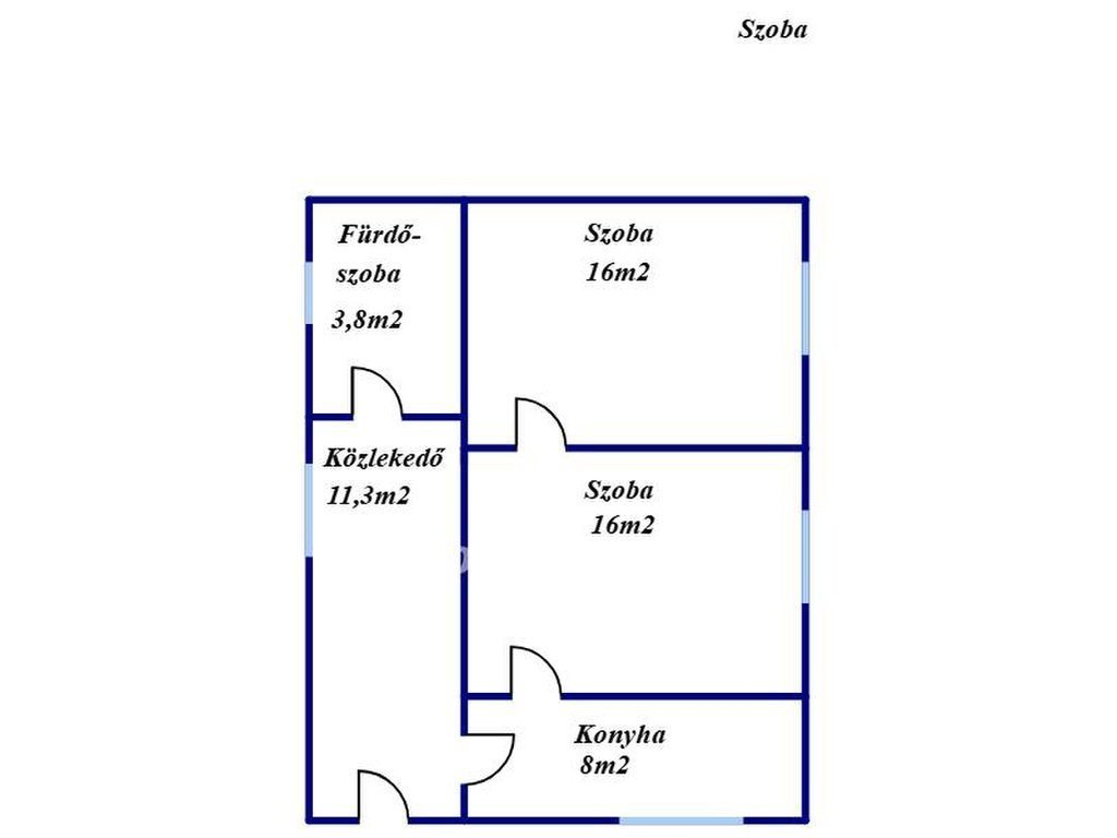 2 szoba, konyha, fürdőszoba, közlekedő,