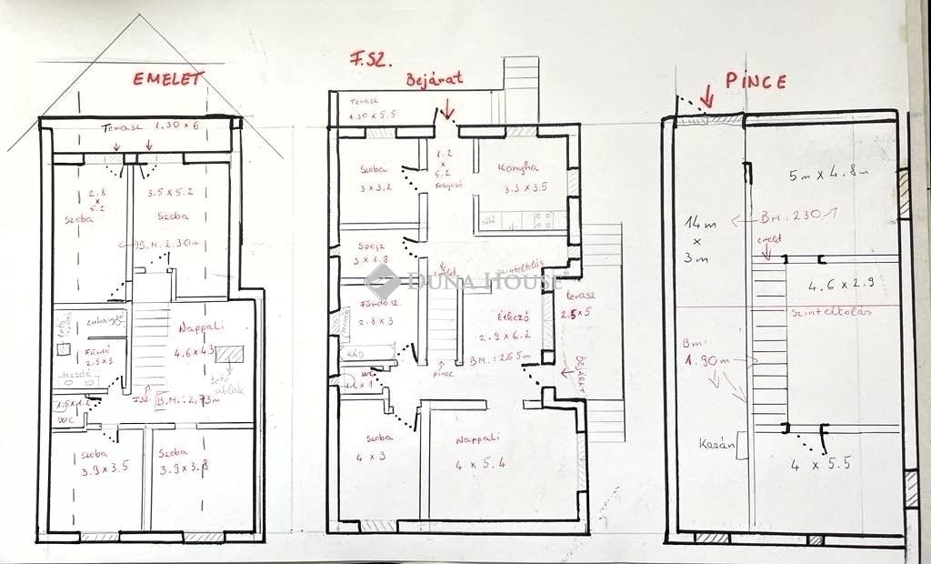 -Hasznos lakrész 196 m2 ( szuterén szinttel, pincével együtt 286 m2 energetikai tanúsítvány szerint),