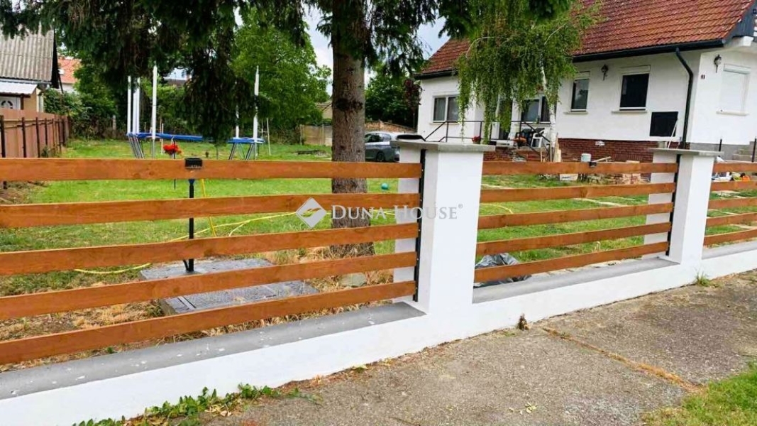 -a terület teljesen sík 948 m2, 27m-es utcafronttal, felújított kerítéssel,