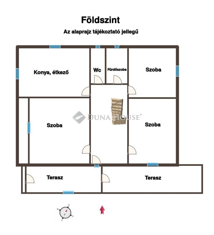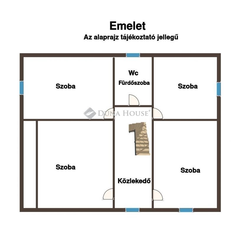 A földszinten 3 szoba, tágas konyha étkezővel, fürdőszoba és WC található, míg az emeleten 4 szoba és egy fürdőszoba kialakítására alkalmas helyiség áll rendelkezésre.