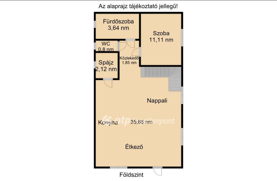 - földszint: konyha-étkező-nappali, spájz, közlekedő, 1 szoba, fürdőszoba, WC, lépcsőfeljáró