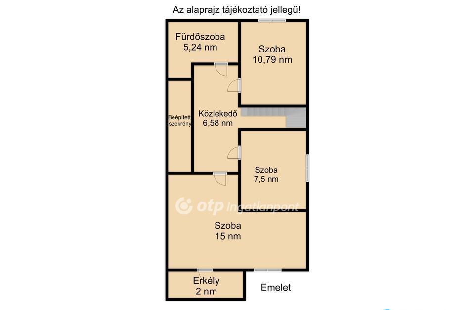 - emelet: közlekedő, 2 fél szoba, 1 szoba + erkély, fürdőszoba és WC egy helyiségben
