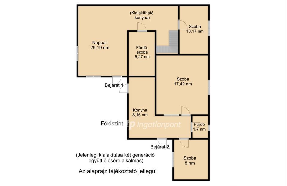 Az ingatlan 2 generáció együtt élésének lehetőségét jelenlegi elrendezése biztosítja.