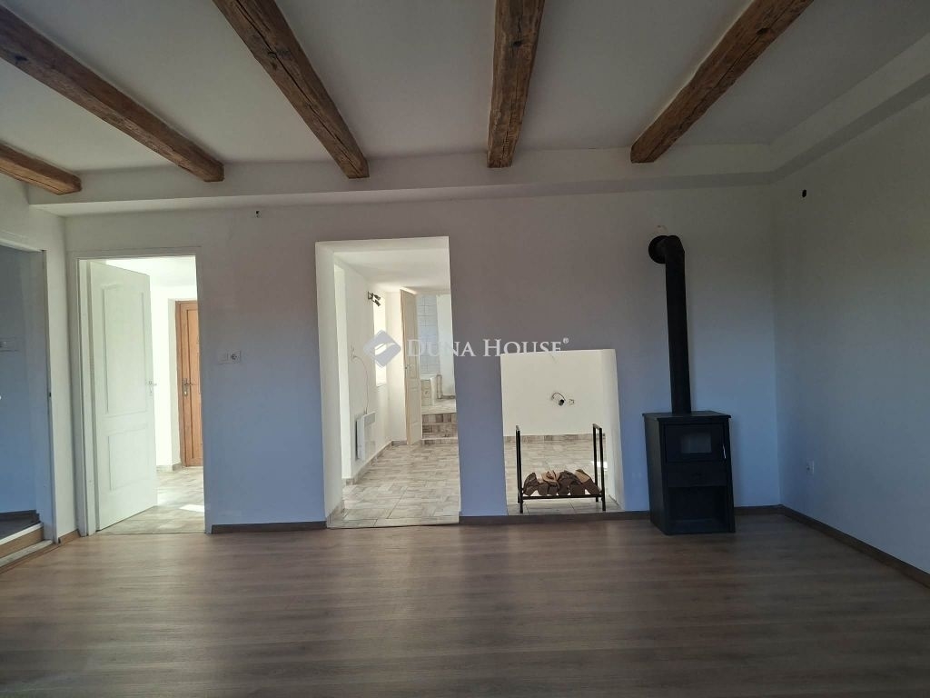 A ház műanyag nyílászárókkal rendelkezik. A fűtést fa tüzelésű kályha, valamint infrapanelek biztosítják.