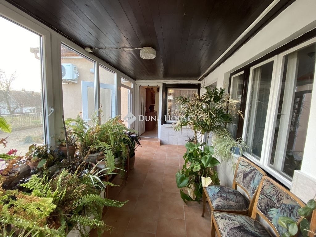 Különleges hangulatú, panorámás családi ház eladó Boldogasszonyfán nagy telekkel és számos lehetőséggelBoldogasszonyfa csendes, nyugodt környezetében kínálunk megvételre egy 120 m²-es, kétszintes, jó állapotú családi házat, amely egy 3400 m²-es, rendezett telken helyezkedik el. Az ingatlan ideális választás mindazok számára, akik a vidéki nyugalmat, a tágas életteret és a természet közelségét keresik.A ház elrendezése:Földszint:A praktikus kialakítású földszinten három szoba, étkező, , folyosó, kis előtér, fürdőszoba, külön WC, egy hangulatos télikert, konyha és kamra található.A szobákban jó állapotú, rendszeresen karbantartott fa nyílászárók találhatók, amelyek redőnnyel és szúnyoghálóval felszereltek., a télikertben műanyag nyílászárók, valamint új műanyag bejárati ajtó került beépítésre Emelet::Az emeleti rész különleges hangulatot és gyönyörű panorámás kilátást kínál a környező tájra. Itt található egy lambériával burkolt szoba, egy erkélyes kisebb szoba, valamint a lambériás helyiségből két további külön nyíló helyiség, amelyek jelenleg nincsenek beépítve, de kiváló lehetőséget adnak további szoba, fürdőszoba vagy dolgozószoba kialakítására.Műszaki jellemzőkVegyes tüzelésű kazán biztosítja a fűtést2 db hűtő-fűtő klíma4 kW-os napelemrendszer5 cm külső hőszigetelésKarbantartott tetőÚj ereszcsatorna rendszerRiasztó- és kameraA 3400 m²-es telek szépen gondozott, rendezett, amely ideális kertészkedéshez, gazdálkodáshoz vagy akár pihenőkert kialakításához.Az udvaron található:különálló garázskazánházpincetöbb melléképület, amelyek tárolásra vagy műhelynek is alkalmasakTovábbi lehetőségA telek közvetlen közelében található egy kb. 1 hektáros szántó, amely nem része a meghirdetett árnak, de külön megállapodás keretében megvásárolható.Ez az ingatlan kiváló választás lehet családi otthonnak, vidéki nyaralónak vagy akár gazdálkodásra is, hiszen a tágas telek és a bővíthető emeleti rész számos lehetőséget rejt magában.Ha egy nyugodt, természetközeli, mégis jól kihasználható otthont keres, ezt az ingatlant érdemes személyesen is megtekinteni.Érdeklődés esetén keressen bizalommal!