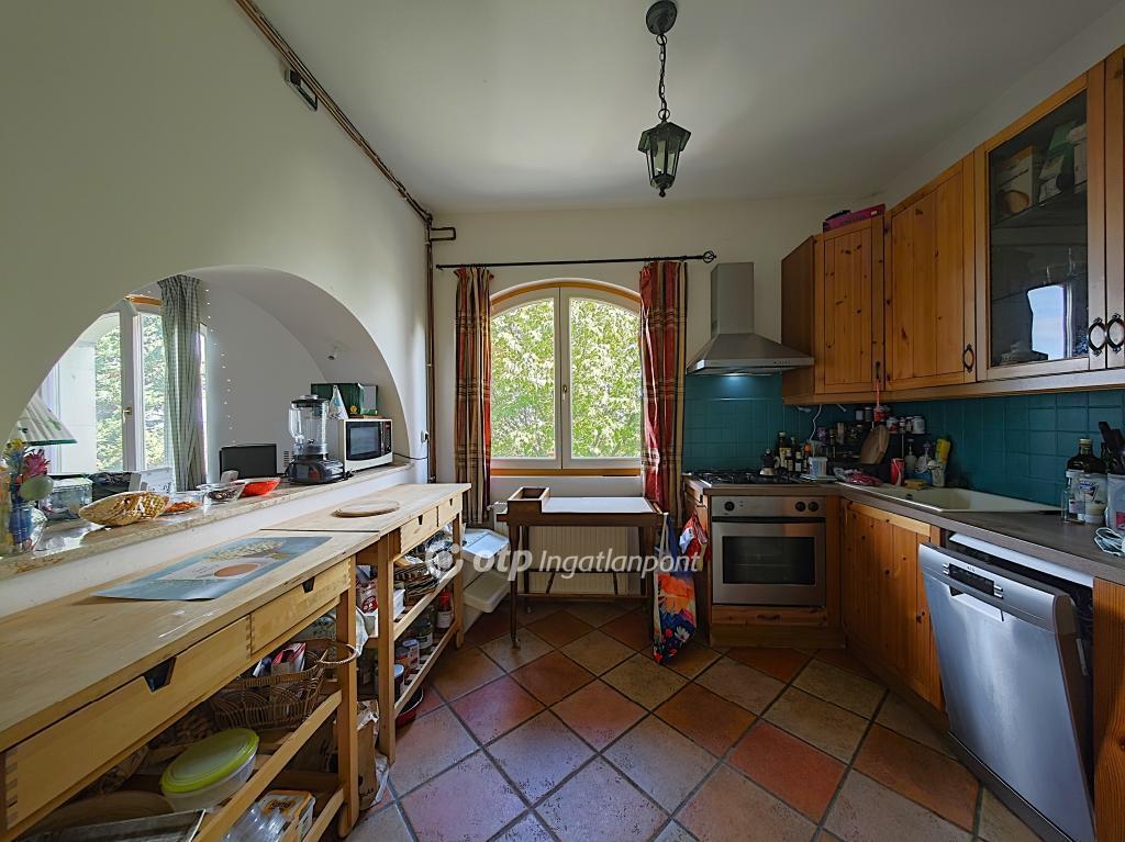 A földszinten található még a fürdőszoba és a mosókonyha mellett egy tökéletes méretű, ablakos konyha is, mely boltíves átadóablakával nyílik egybe az egyedi hangulatú kilátást nyújtó nappalival, mely étkezőként is funkcionálhat.