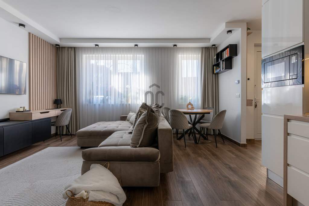 Budakeszi egyik legkeresettebb, mégis csendes részén eladó egy 2023-ban épült, kétszintes, nettó 70 m²-es, sorházi jellegű lakás, teljes berendezéssel, első tulajdonostól.