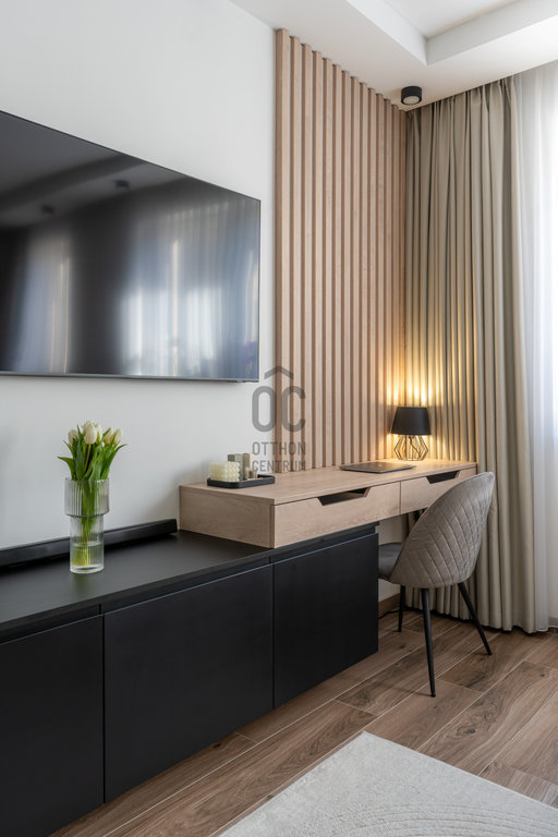 Délnyugati tájolásának köszönhetően egész nap világos, átgondolt elrendezése pedig tökéletes egyensúlyt teremt a design és a funkcionalitás között.