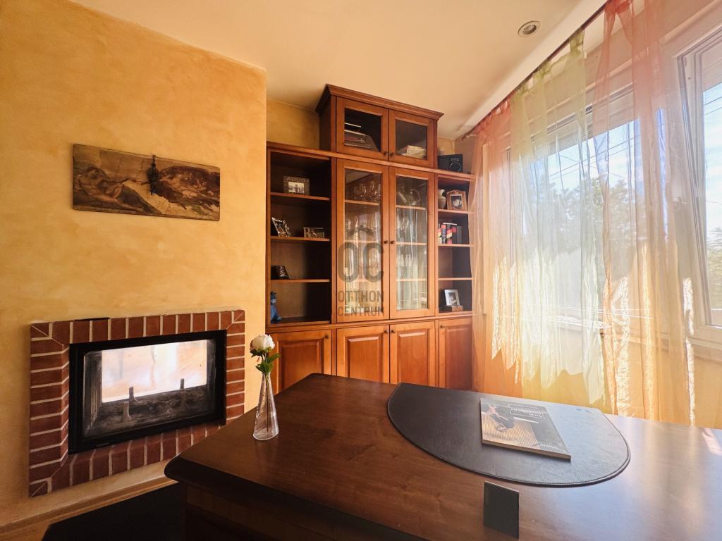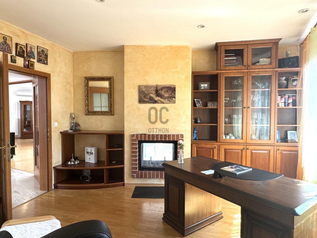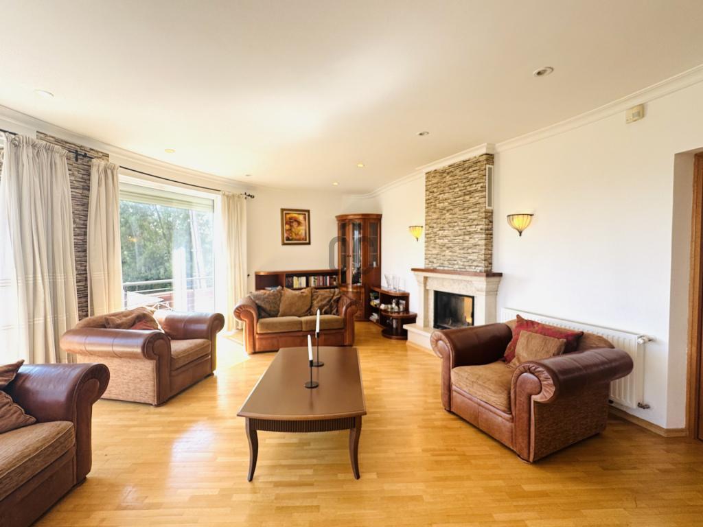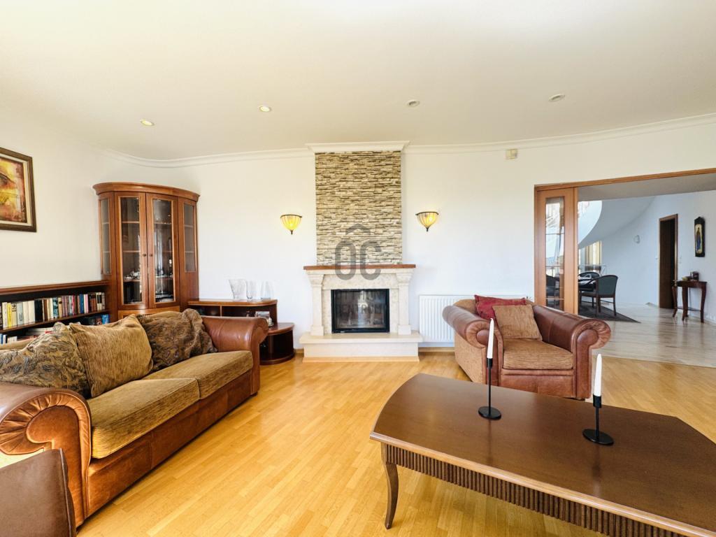 Tágas terek, fényárban: a hatalmas nappaliban a kandalló melege és a körpanoráma egyszerre varázsolja otthonossá az estéket.