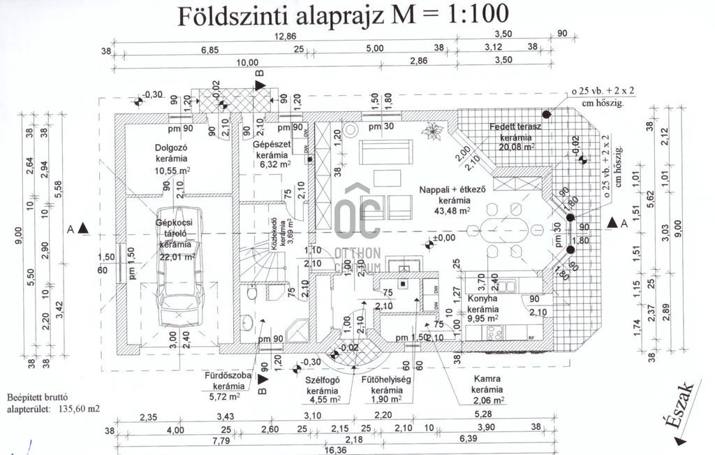 - Külső falak 38 cm-es falazóelemekből.