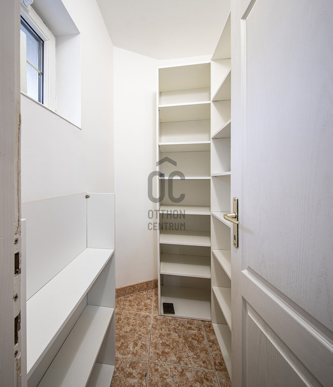 Eladó Budaörs egyik csendes mellékutcájában egy 280 m2-es, alacsony fenntartási költségű, élhető méretű, kerttel rendelkező családi ház. Összesen hét szoba (5 teljes és 2 fél) és egy bő 670 m2-es, jó elosztású, ápolt kert biztosítja a többgyermekes családok kényelmét és magas életminőségét. Két garázs és a kerti beálló tartozik az ingatlanhoz. A garázsokból közvetlenül bejuthatunk a házba.
