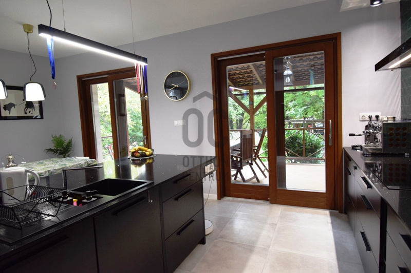 - A konyhához és étkezőhöz kapcsolódó méretes fedett terasz tavasztól őszig egy plusz családi életteret jelent.