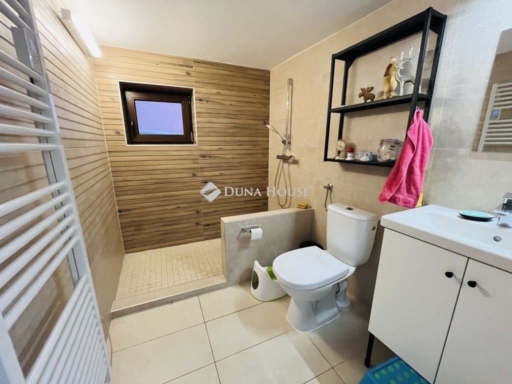 Eladó Budaörs csendes utcájának, családi házas övezetében, egy 180 nm-es ikerház , 433 nm-és kizárólagos telekkel.2019-ben teljes körű felújításon, korszerűsítésen esett át az ingatlan, a villany, víz és fűtés rendszer teljes cseréje, falak átépítése, nyílászárók cseréje megtörtént. Geo áram által vezérelte hőszivattyú biztosítja a mennyezeti hűtés fűtést és a padló fűtést.Külső 12 cm grafit szigetelés, 3 rétegű, 5 légkamrás ablakok, elektromos redőnyök, gyártott szúnyoghálók kerültek beépítésre.Ezáltal az ingatlan 2024-es energetikai tanúsítvány A+ besorolású!A szomszéddal közös falak hangszigetelő kőzetgyapot Rockwool Nd és speciális hangszigetelő gipszkarton Rigips Akusztik előfallal lettek kiegészítve.Három szintes épület, telken belüli kocsi beállóval, garázzsal rendelkezik, motoros garázskapu és bejárati úszókapuval.Jelenleg 2 szint felújított és lakott- Felső emeleten két szoba, zuhanyzós fürdőszoba wc, társalgó. -Középső szinten előtér, konyha nappali, wc, hálószoba fürdőszobával.A földszint az új lakó igényei szerinti kialakításra vár, fontos hogy földszintről beszélünk, nem szuterén hiszen a ház alapja 40 cm magasan van a kert szintjéhez képest . Itt az utca fronton a garázs található, a hátsó részen egy 50 nm jelenleg két helyiségből álló tér található. Az ingatlan kertje privát, intim, gyümölcsfákkal, kis veteményessel és közepén a fűzfa árnyékában egy viacolor terasz grill és bográcsozó kialakítása teszi kellemessé, mellette a gyerekeknek szezonális medence és trambulin is kényelmesen elfér egyszerre.Pár perc sétatávolságra iskola, játszótér, uszoda 1000 m-en belül egészségügyi központ, városi központ (bankok, színház, élelmiszer, drogéria, gyógyszertár) BKV és a helyi buszjáratnak 3 megállója is 400 m belül van.