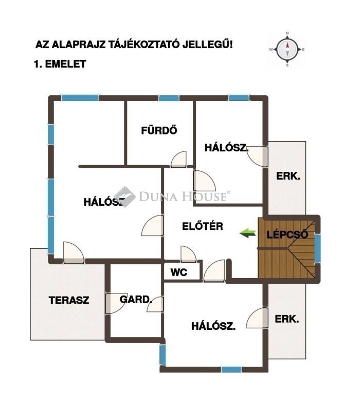 Nappaliból nyíló teraszon túl az emeleten lévő valamennyi hálószoba rendelkezik terasszal/erkéllyel.
