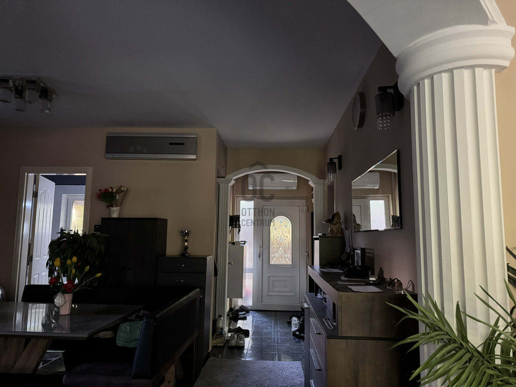 A ház egész nap világos, kiváló állapotú, gondosan karbantartott. Az alsó szinten egy tágas, amerikai konyhás nappali található, mellette két kényelmes hálószoba, egy kádas fürdőszoba WC-vel, valamint egy külön mellékhelyiség. A felső szint jelenleg egy légtér, amely igény szerint szabadon alakítható, akár több szoba is kialakítható, vagy belső kétszintes elrendezésben tovább gondolható.