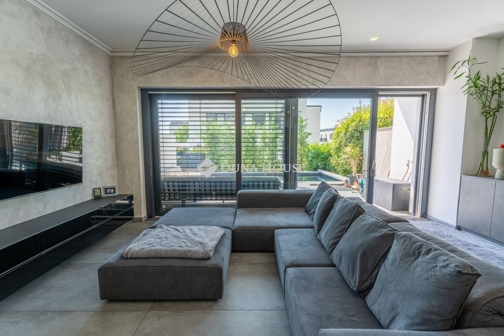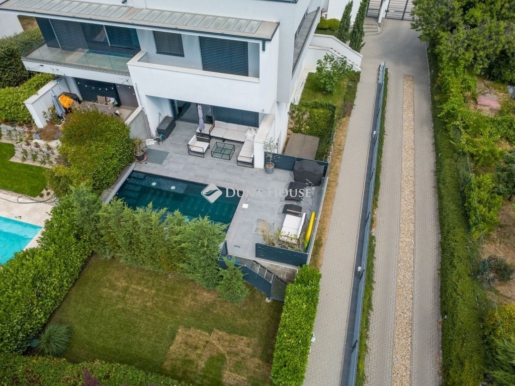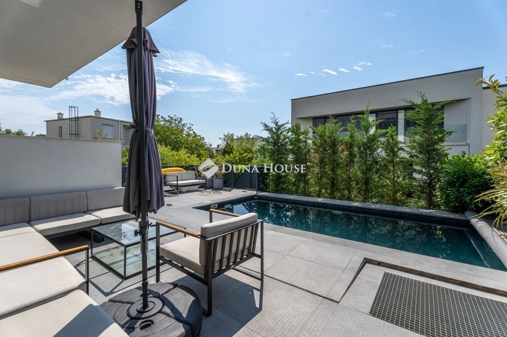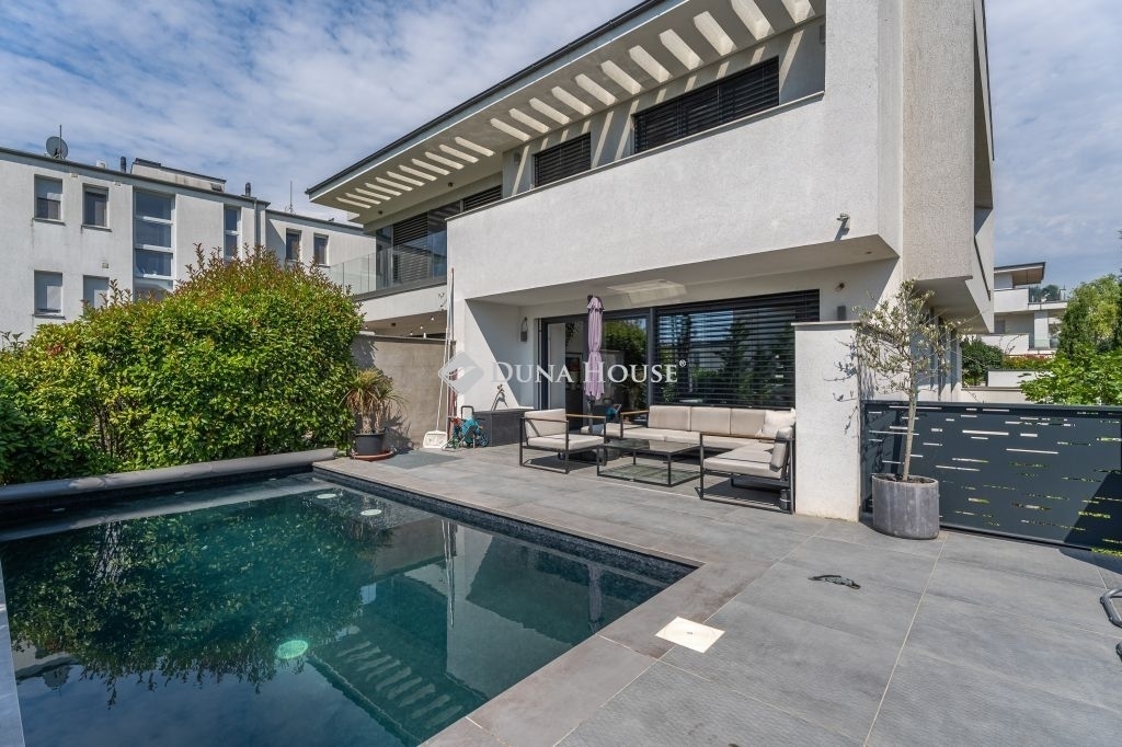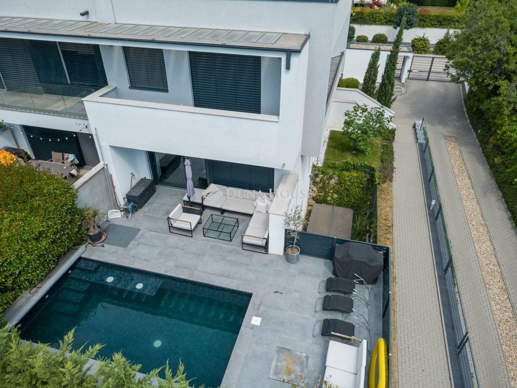 Minimál luxus Madárhegyen saját medencével, jakuzzival, dupla garázzsalEz a háromszintes minimál ikerházfél a XI. kerület egyik legszebb részén, Madárhegyen kínálja azt az életminőséget, amit a tudatos vásárlók keresnek de ritkán találnak meg.180 m² lakótér, 4 hálószoba, 3 fürdőszoba, fűthető medence, jacuzzi, dupla garázs de ennél sokkal többről van szó.Az otthon minden eleme tudatosan van megkomponálva: lebegő acél lépcső, gránit konyhasziget, design világítás, smart home rendszer, elektromos zsalúziák, hangszórók beépítve.A terasz és a nappali szinte egybeolvad, a fűthető medence, a gondozott kert és a jakuzzi azonnal átváltják a hétköznapot pihenéssé.A konyha a márkás gépekkel és 240×140-es gránitszigetével nemcsak látványos, hanem praktikus is reggelik, borozós esték, gyerekzsúrok - mindenre is alkalmas.Az emeleten a három hálószobához saját teraszkijárat tartozik, a fürdők pedig színvonalas kivitelezéssel, prémium anyaghasználattal készültek márványpult, beépített bútorok, dupla mosdók, minőségi szerelvények.A pinceszinten egy wellness rész is kapott helyet: szauna előkészítés, jakuzzihoz vezető intim terasz. Továbbiakban ezen a szinten található külön vendégszoba, mosókonyha, tároló, dupla garázs.Minden funkciója a kényelmet és az átgondolt mindennapokat szolgálja.Ez az ingatlan nem csak felszereltségben kiemelkedő, hanem hosszú távon is értékálló választás!Ha megszólított, keress bizalommal és nézd meg személyesen.