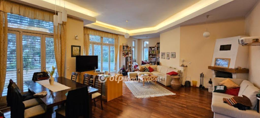 A földszinti rész tágas nappali (60 m?-es) és konyha, két hálószoba, fürdőszoba, 30 nm-es Terasz belső szeparált kertre néz.