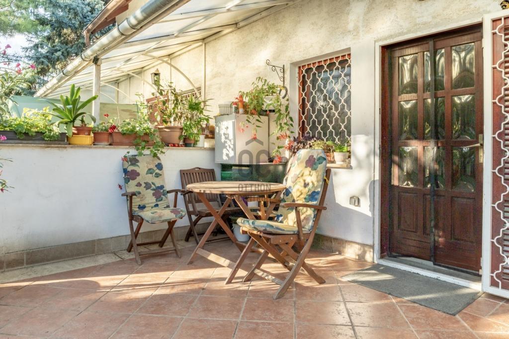 - Terasza és kertje a nappalihoz kapcsolódik, amely a domborzati viszonyok miatt egy szinttel feljebb van, mint az utcafront felőli bejárat.