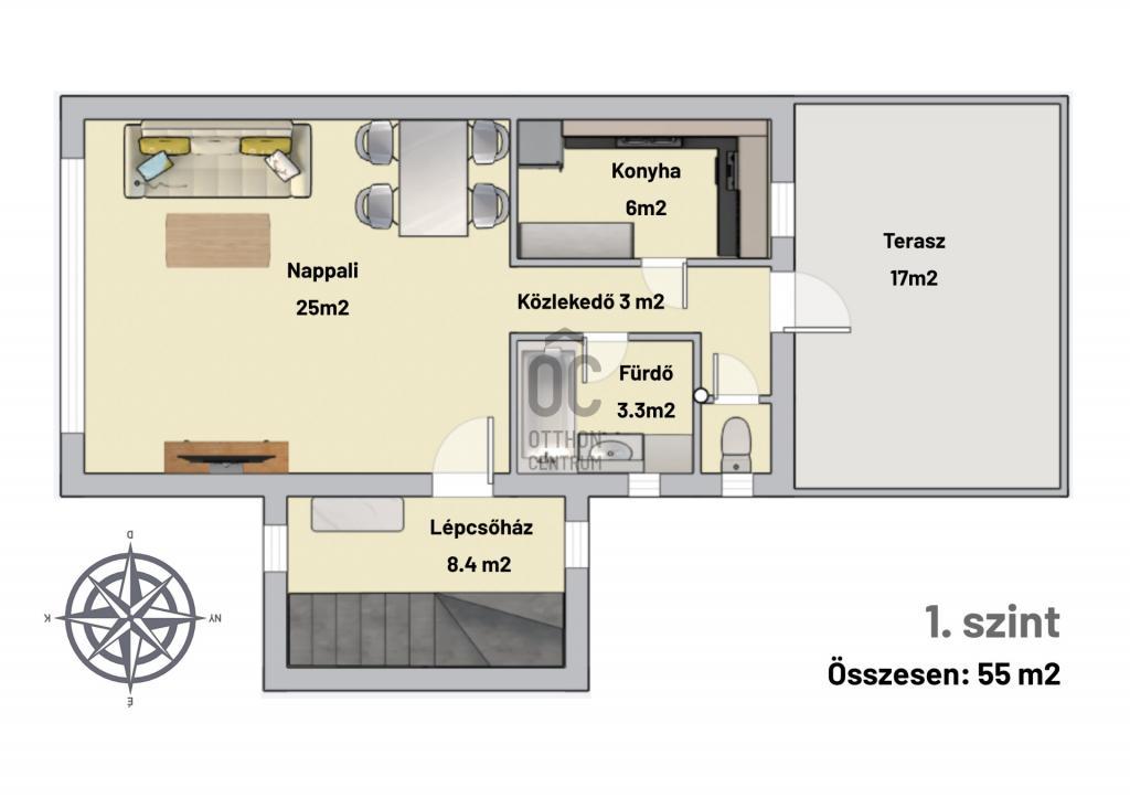 - 161.5 m2-es lakótérrel, 17 m2-es terasszal, közel 180 m2-es kerttel éa autóbeállóval rendelkező otthon.